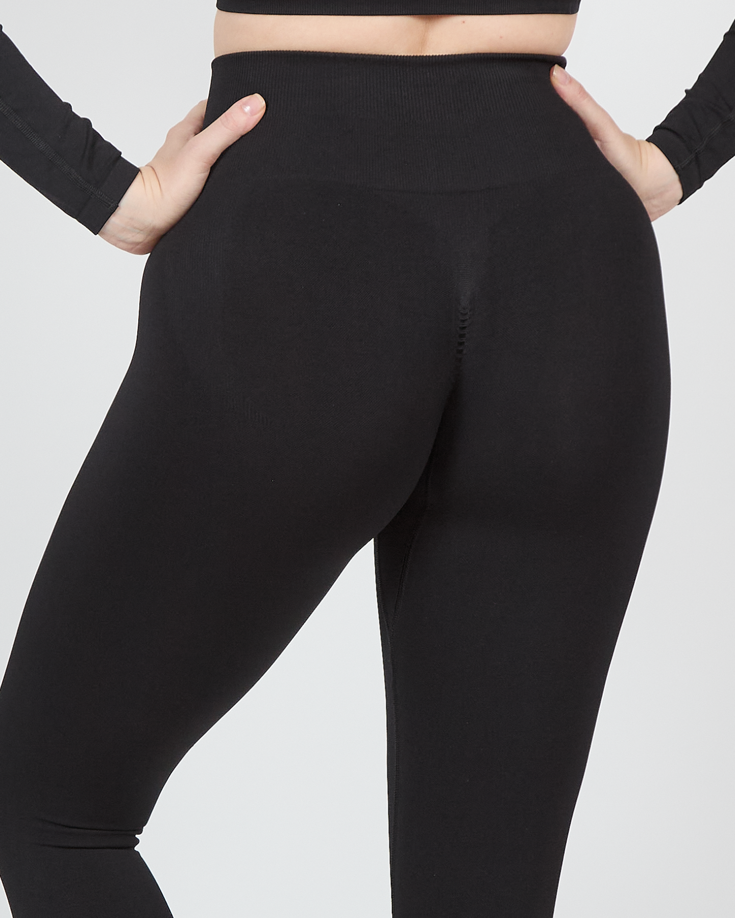 Die schwarze Leggins passt sich an wie eine zweite Haut, sie rutscht nicht und gibt durch die Kompression eine tolle Form. Der Scrunch ist toll, nicht zu übertrieben. Der Bund am Bauch ist fest, hat eine angenehme Höhe, aber schneidet nicht ein, so fühlt man sich richtig wohl. Ich muss kein einziges Mal daran zupfen während dem Workout (Hiit oder Kraft). Sie sitzt auch nach dem Waschen immernoch. Kann ich sehr weiterempfehlen.